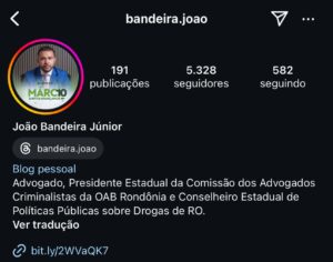 Recentemente, o advogado João Bandeira Júnior, presidente estadual da Comissão dos Advogados Criminalistas da OAB-RO e Conselheiro Estadual de Políticas Públicas Sobre Drogas (Conepod), foi alvo de críticas após um comentário considerado infeliz em um grupo de WhatsApp. A polêmica começou quando ele compartilhou uma foto de uma pick-up Ford Courier estacionada em frente a uma loja de ferragens, associada à “Chapa 11”, concorrente da chapa que ele apoia. Na sequência, Bandeira comentou: “A advocacia está feia mesmo!”, em tom de menosprezo ao veículo, que exibia um adesivo de apoio à chapa adversária.