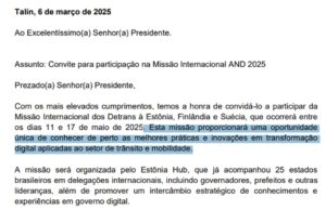 Contratação de empresa especializada, visando participação de três servidores na Missão Internacional dos Detrans à Estônia, Finlândia e Suécia – Associação Nacional dos Detrans 2025, que ocorrerá nos dias 11 a 17 de maio de 2025, promovida pela ESTONIA HUB TRANSFORMACAO DIGITAL LTDA https://pncp.gov.br/app/contratos/15883796000145/2025/68
