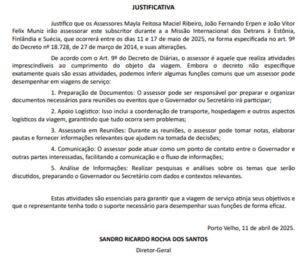 Na consulta pública do SEI, e aqui com muita dificuldade achamos o processo público 0010.008629/2025-45  – que só foi da compra de passagem o que tudo indica. Mas só conseguimos ver o decreto do irmão do Diretor autorizando a viagem.