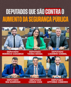 A coisa piorou quando foi elaborada uma arte dizendo “São esses os deputados que defendem o projeto de lei que revoga o aumento do ICMS”. Aparecem as fotos dos deputados Rodrigo Camargo (Republicanos), Afonso Cândido (PL), Nin Barroso (PSD), Cássio Gois (PSD), Luizinho Goebel e Dra Taíssa (PSC). Ponto para a oposição.